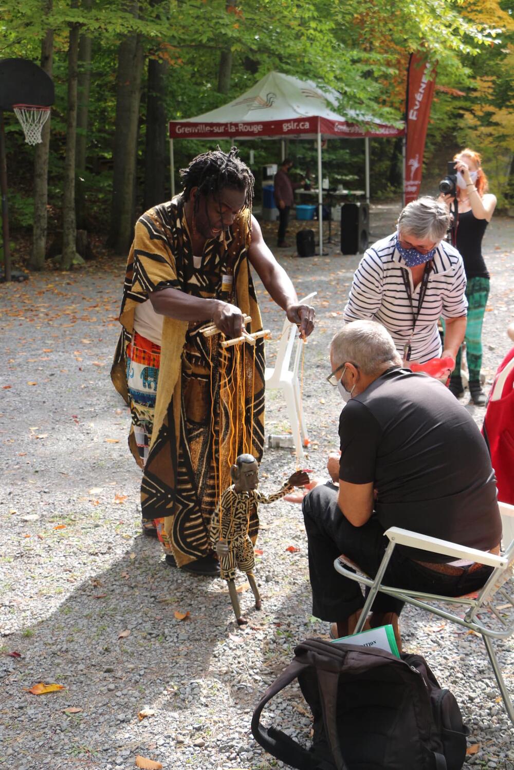 Floribert Pertulien BANTSIMBA originaire du Congo-Brazzaville, artiste pacifique multidisciplinaire, à la fois conteur, marionnettiste, percussionniste et artisan. Il nous transporte, à travers ses contes et ses spectacles, directement en plein cœur de l’Afrique, et plus précisément du Congo-Brazzaville d’où il est originaire. Médiateur culturelle, membre du regroupement des arts de rue du Québec et diversité artistique de Montréal. Ses débuts au théâtre, c’était sur la scène scolaire à Brazzaville dans les années 80.