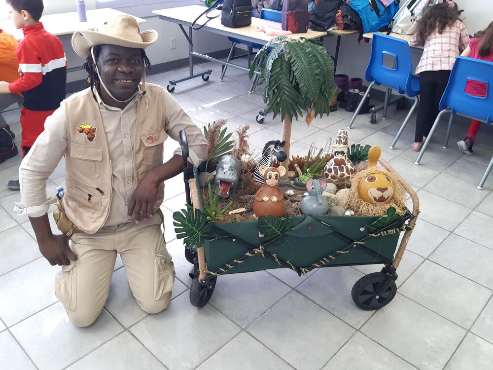 2018 met deux créations sur la place de Montréal: Un voyage au cœur de l’Afrique centrale masque et valeurs, un conte/marionnette/masque sur l’histoire des masques africains. Également créateur, assistant le metteur en scène et acteur de l’adaptation théâtrale et contée de Wapiti l’orphelin et la calebasse avec la collaboration de Catherine Simard, spectacle présenté pour la première fois à la bibliothèque Publique d’Ottawa en juin dernier et poursuivant sa tournée 2019-2020 à travers le Québec. En 2020, SOGOBO DÉBOULE, 2022 SAFARUES MOBILE. Il aime partager quelques contes avec des enfants friands d’histoires et d’univers pleins de couleurs et de musiques qu’ils transmettront à leur tour.