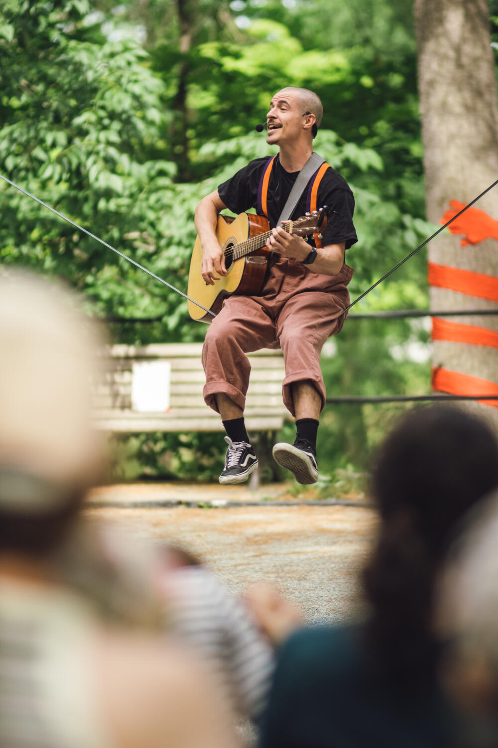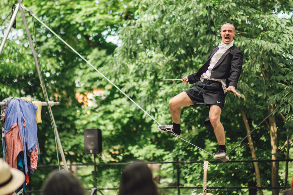 Guillaume Fontaine est un artiste de cirque multidisciplinaire. Il découvre la slackline en 2015 et tombe amoureux de cette belle sensation de marcher au-dessus du vide. Très rapidement, à force de pratique et d’une grande volonté, il acquiert un excellent niveau dans cette discipline qui exige concentration, persévérance et découverte de soi.