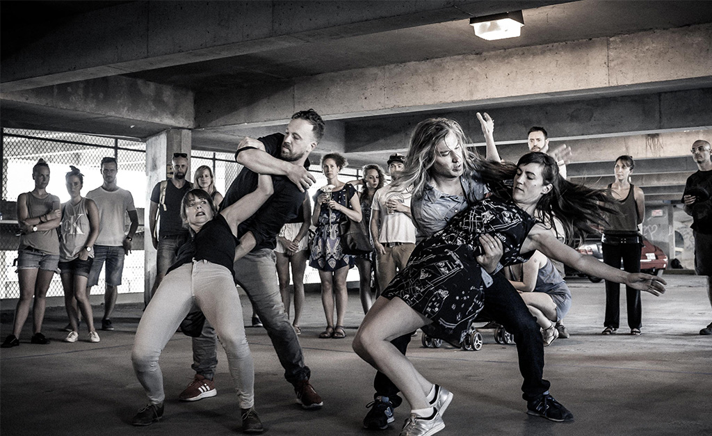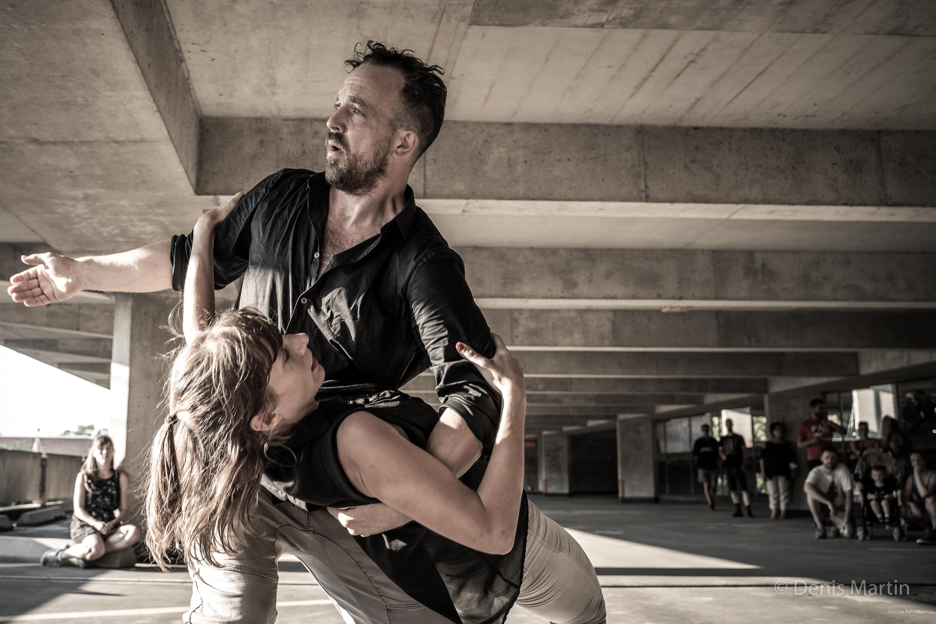 Un déambulatoire chorégraphique (40min) qui ouvre les parenthèses d'un drame intime. Une dramaturgie écrite à même une succession de lieux, qui déplace le public, l'interpelle comme témoin. Guidé par un système de son mobile, les spectateurs baignent dans l'univers de Parking, une pièce qui suscite l'émotion et provoque une réflexion sur la perte.