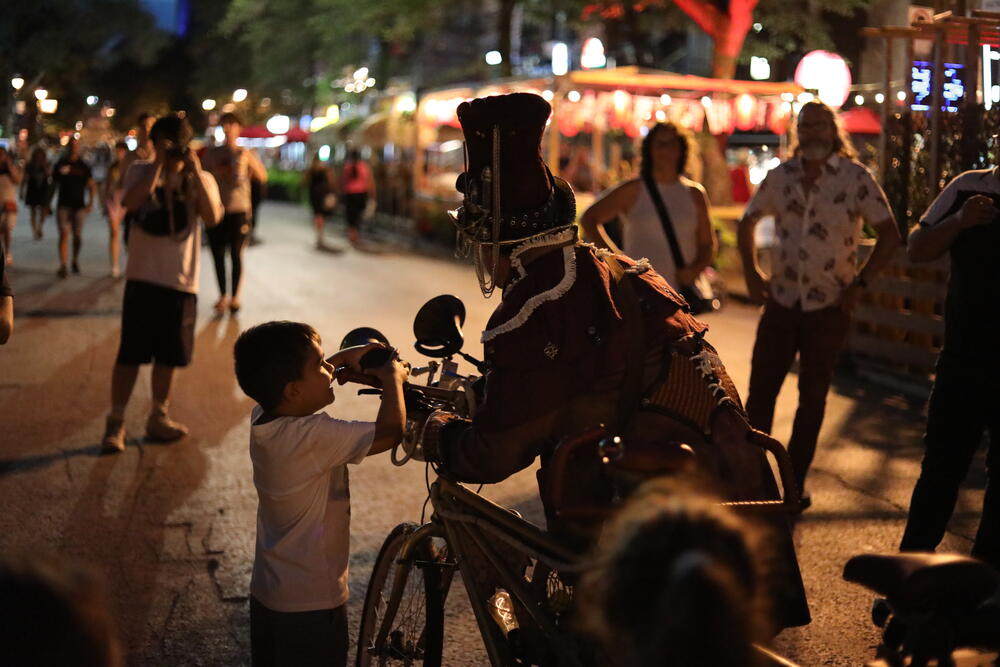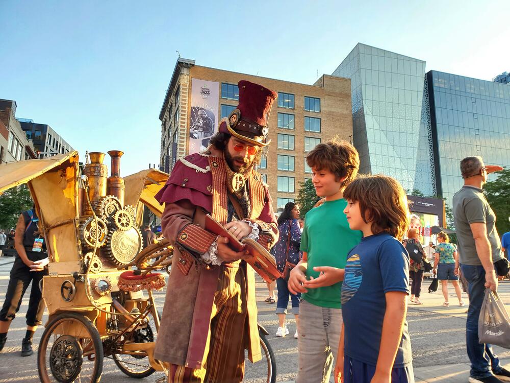 Les possibilités sont (presqu') infinies avec nos animations déambulatoires. Que vous souhaitiez recevoir notre Aérocypède, que les personnages se déplacent en vélo tandem ou en échasse ou encore qu'ils jonglent, rien n'est impossible!