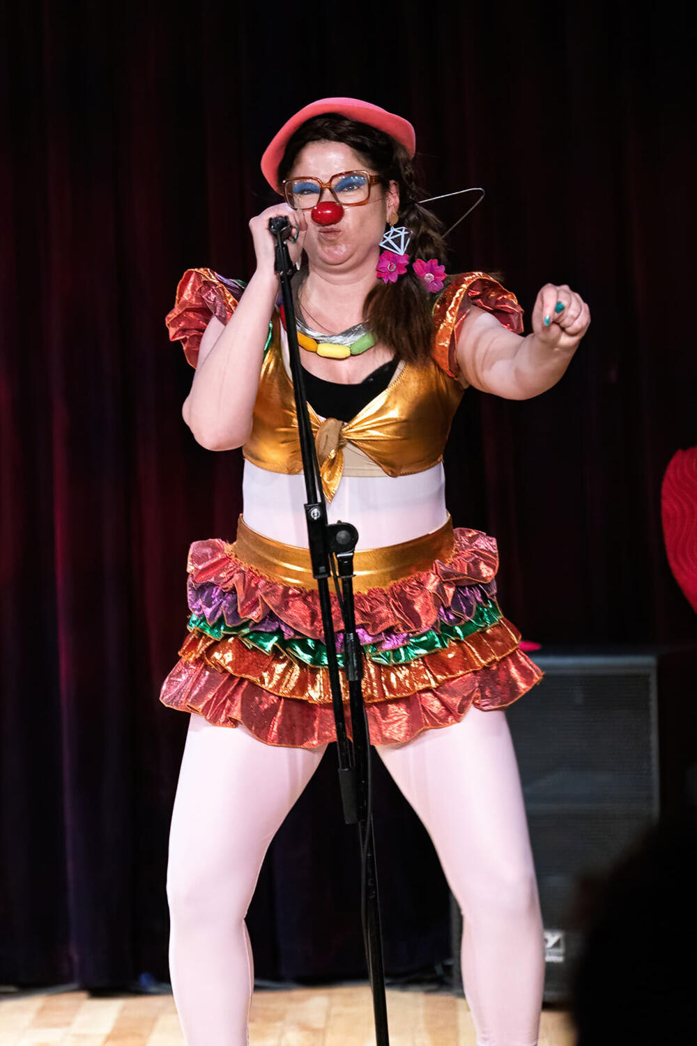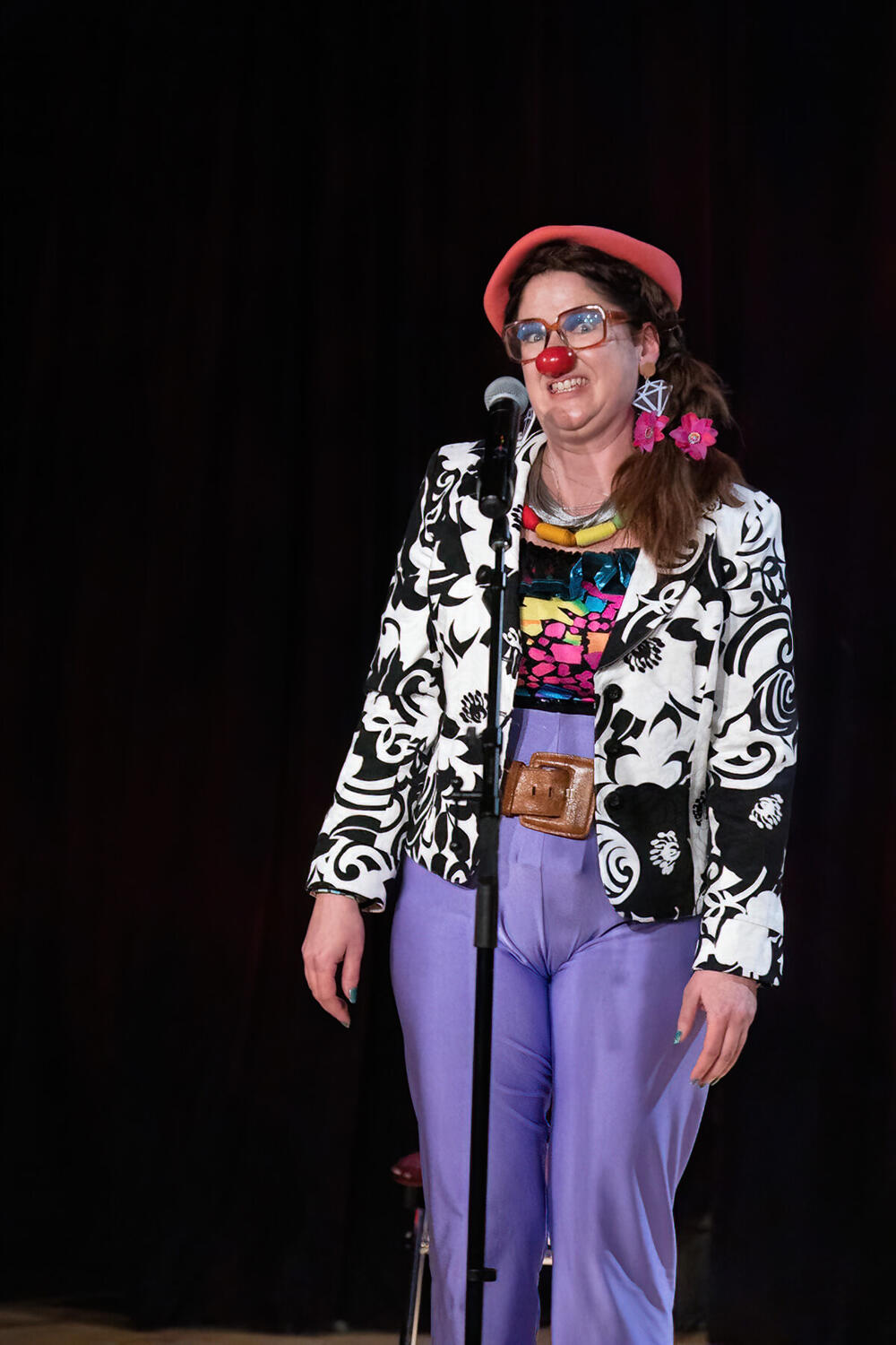 Shallyjulie Messier apparait dans un tissu social qui va à la rencontre de l’autre. Sous différents chapeaux; maitre de cérémonie, clown relationnelle, chanteuse-improvisatrice et créatrice de personnages sur mesure. Elle offre une relation avec l'instant par des actes choisis ou déambulatoires qui naissent à travers de multiples événements et demandes spéciales. Son âme est sculptée par le rire, le chant, la folie douce, la danse, la dérision et la bienveillance. Le clown et les personnages de la performance sont pour elle des archétypes de la résilience, qu'elle veut partager pour toucher, charmer et inspirer.