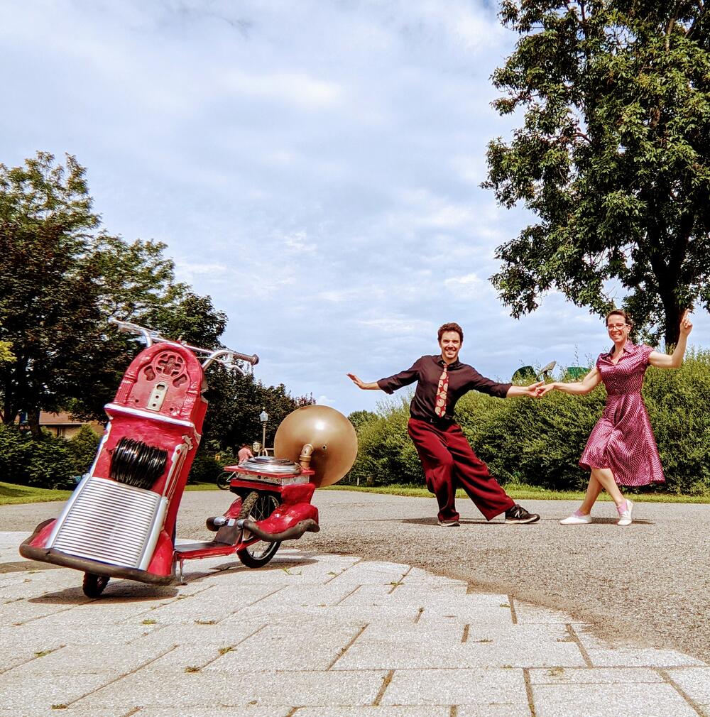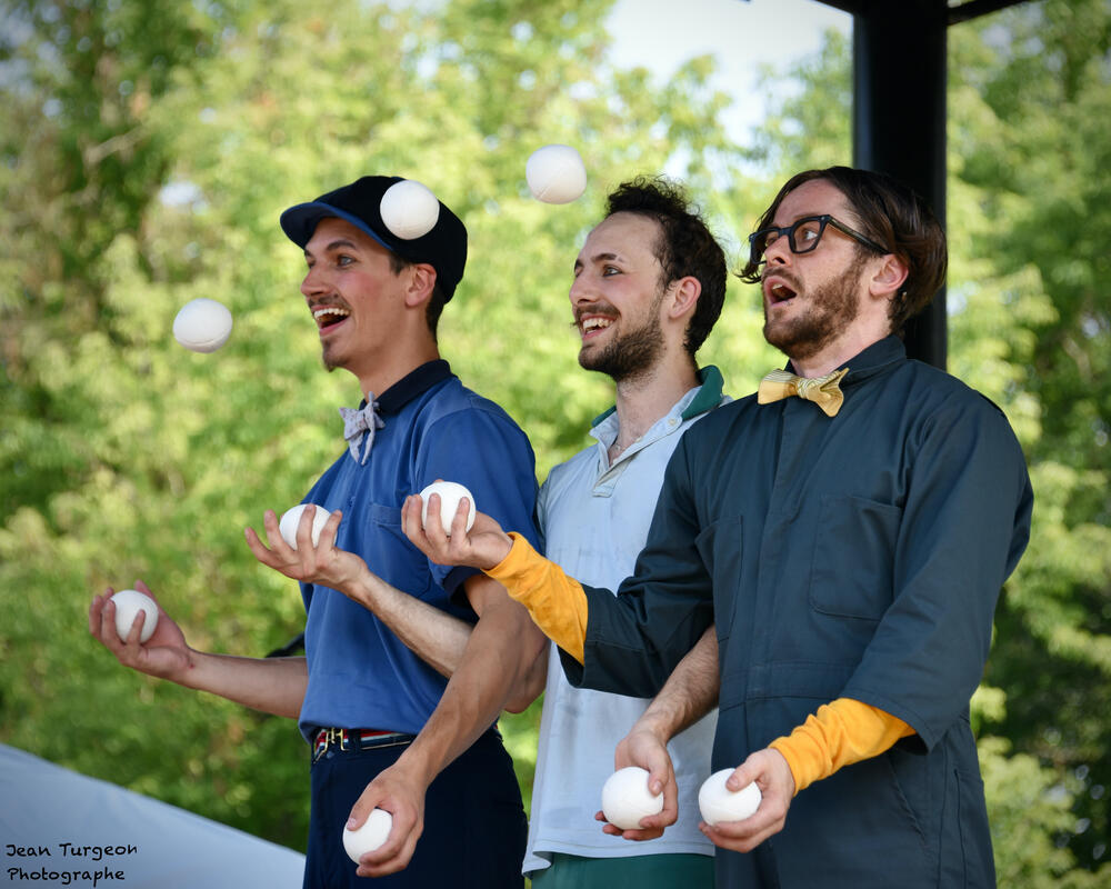 Au cœur de nos créations, on trouve d’abord le plaisir pur et simple de jouer. Une joie qui nous replonge dans notre enfance naïve et curieuse. Les trames narratives de nos spectacles, drôles mais aussi touchantes, sont nourries de par cette vulnérabilité, cette maladresse face aux différentes situations de la vie de tous les jours; celle qui nous transforment parfois en clown malgré nous. À la manière d’un film muet, nos créations charment les spectateurs sans avoir à utiliser la parole.