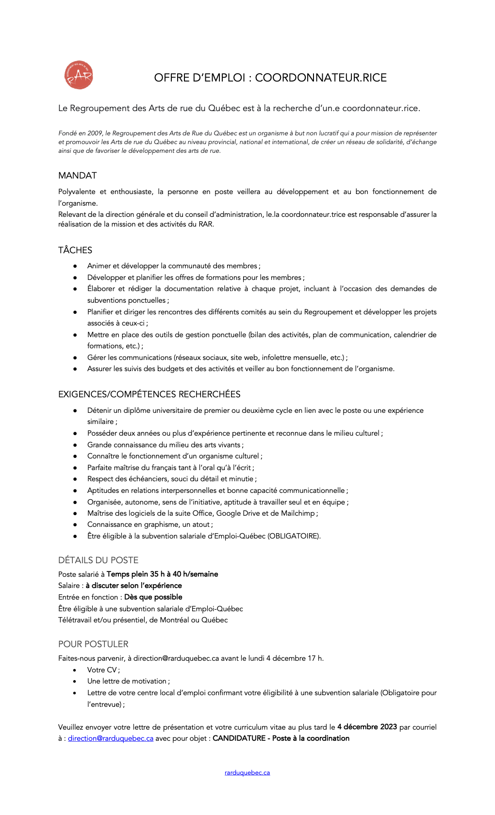 Offre d'emploi